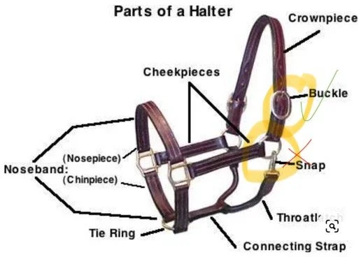 1. If you are showing a horse in a halter, please please put your number on the buckle of the crown piece, NOT on the metal circle that connects the cheek pieces to the throatlatch. Why you might ask? When the bridle number is hooked onto the metal circle, the number can move, slide, flip, and just generally freak out any young horse who catches a glimpse of it out of the corner of their eye. When attached to the buckle, it generally moves a lot less and causes a lot less head-shaking, head tossing, and unhappiness. It’s a small thing, but trust me, it matters.